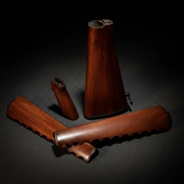 Command attention with the striking elegance of the A1 Red-Stained Mahogany Furniture Set from American Icon — a bold and refined upgrade for your AR-15. Designed to honor the look and feel of vintage service rifles, this set features a deep red stain that enhances the natural grain of solid mahogany, giving your rifle a distinctive, heirloom-quality finish.
